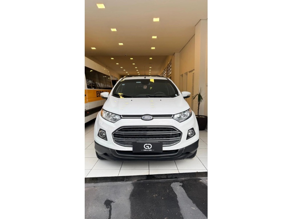 // BLINDAGEM ETERNITY // Ford Ecosport, 2014/2014, na cor branca com apenas 90.000 KM e câmbio automático. Modelo Titanium conta com câmbio automático, bancos em couro, ar condicionado, rodas de liga leve. Outros itens de segurança: ABS, airbags, controle de tração. Veículo alinhado, revisado, IPVA pago e licenciado, com conforto e performance na medida e acabamento impecável. Pronto para você entrar e rodar. Venha garantir o seu por meio de nossos canais de atendimento!GD Cars e Vans.